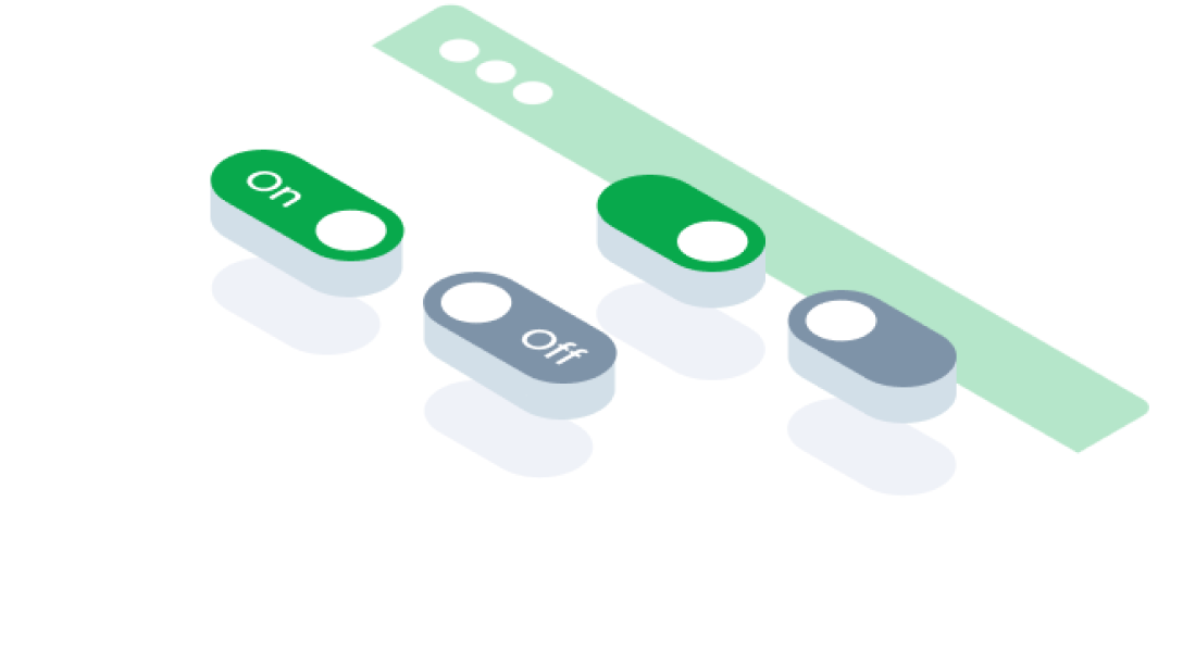 This switch variant includes a hierarchical design, where a parent switch dynamically reflects the state of its child switches. If all child switches are enabled, the parent switch turns on; if none are enabled, it turns off. A mixed state is indicated when some, but not all, child switches are enabled.