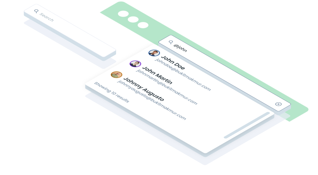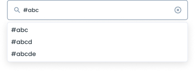 Displays search input with dropdown suggestion, with the variant of: dropdown, hashtag, and user