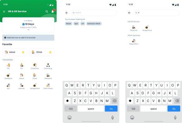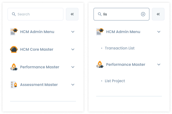 When the user types at least 3 letters in the search field, the results of the search immediately appear according to the input from the user. Or the user can also display the search results by pressing the enter key.