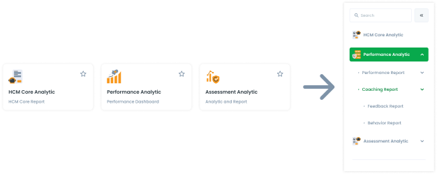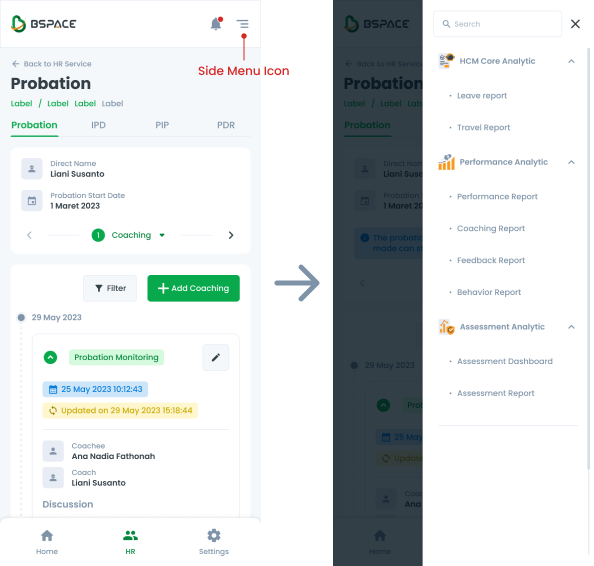 The side menu is different for each function and service, for example opening the Analytics page in HR Service, so the side menu that opens is only the features in HR with the Analytic function.