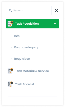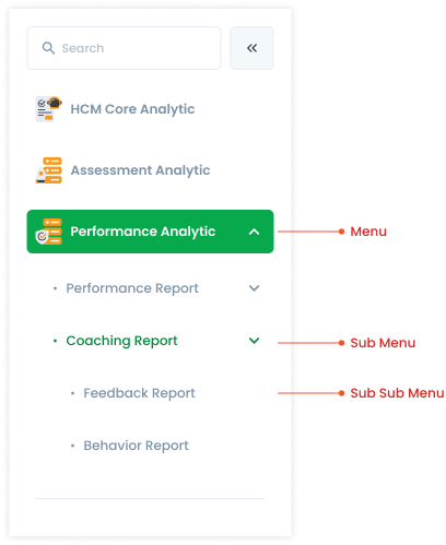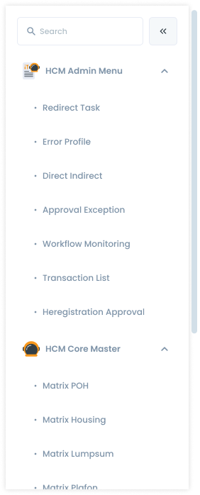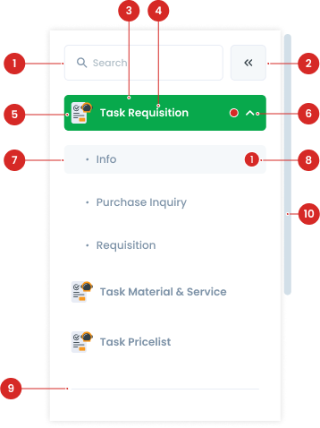 If the side menu exceeds the length of the page, a scrollbar appears outside the side menu. This scrollbar can be by click or scroll from the mouse. At the very bottom of the menu list, there is a divider which functions to indicate that it is the end of the side menu. The menu has an icon (the icon follows the cluster service), while the submenu doesn't (only the dot icon). Then the order in the side menu follows the order in the Cluster Service. The order of the submenus is based on the business process. If there is no sequence of business processes, then it is based on the user's usage intensity.