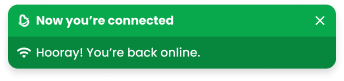 Success | Implement the Success Toast variation to confirm successful actions, completion of tasks, or positive outcomes. Example use cases: