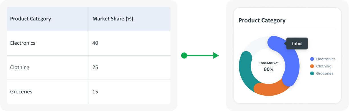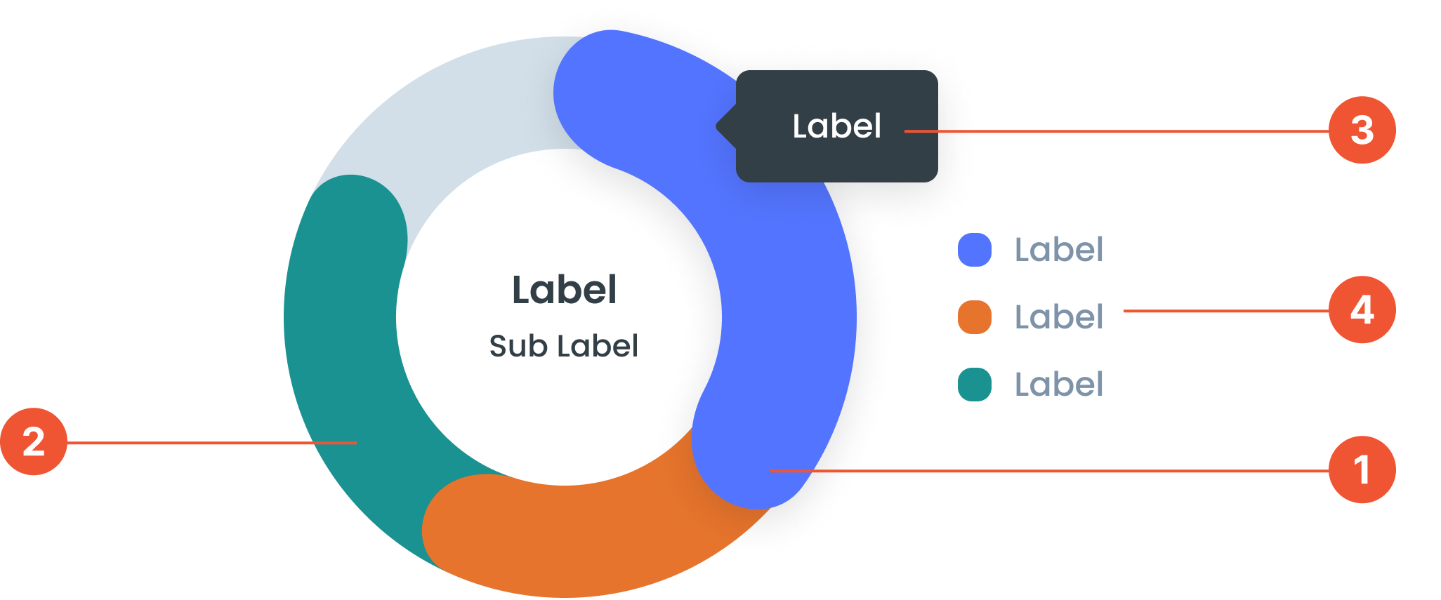 - Center Labels: The labels and sub-labels in the center of the donut chart are optional. Can be used to provide a summary or key information.