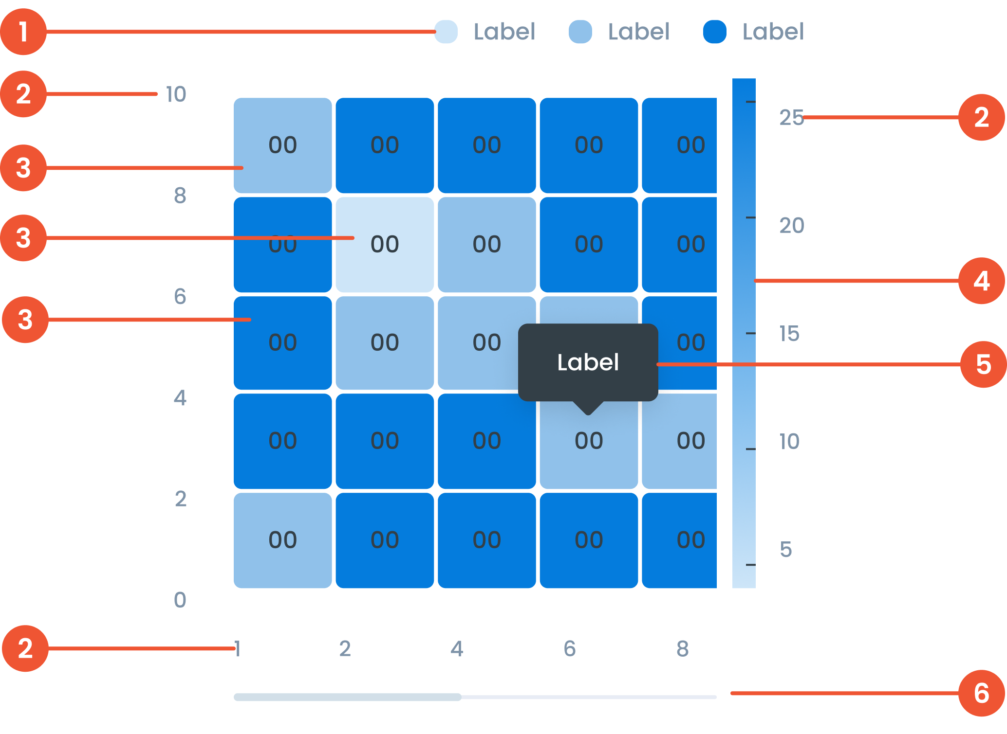 - Diverging Colors: According to the diverging color palette, Heat Map diagrams can use these colors to represent conditional data.z