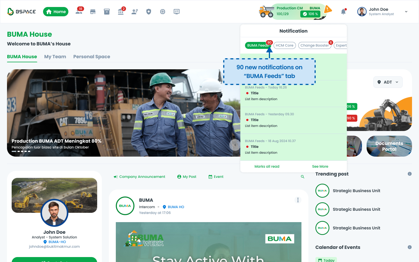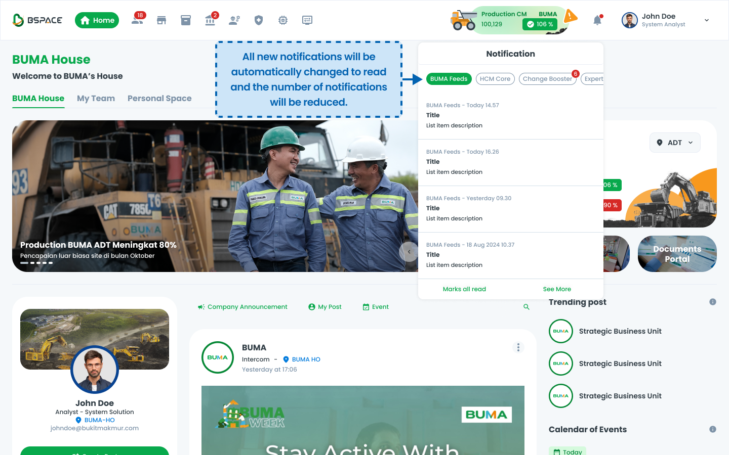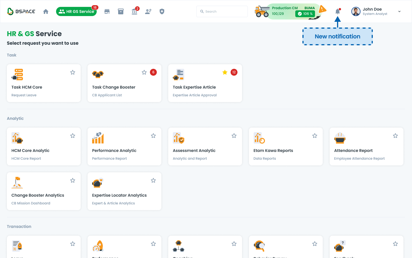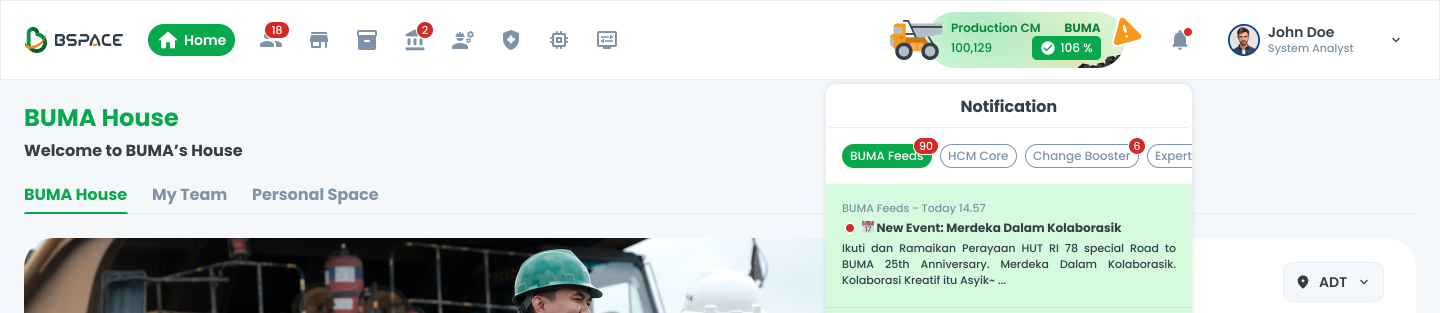 Users receive notifications in the system, indicated by a red badge on the notification bell.