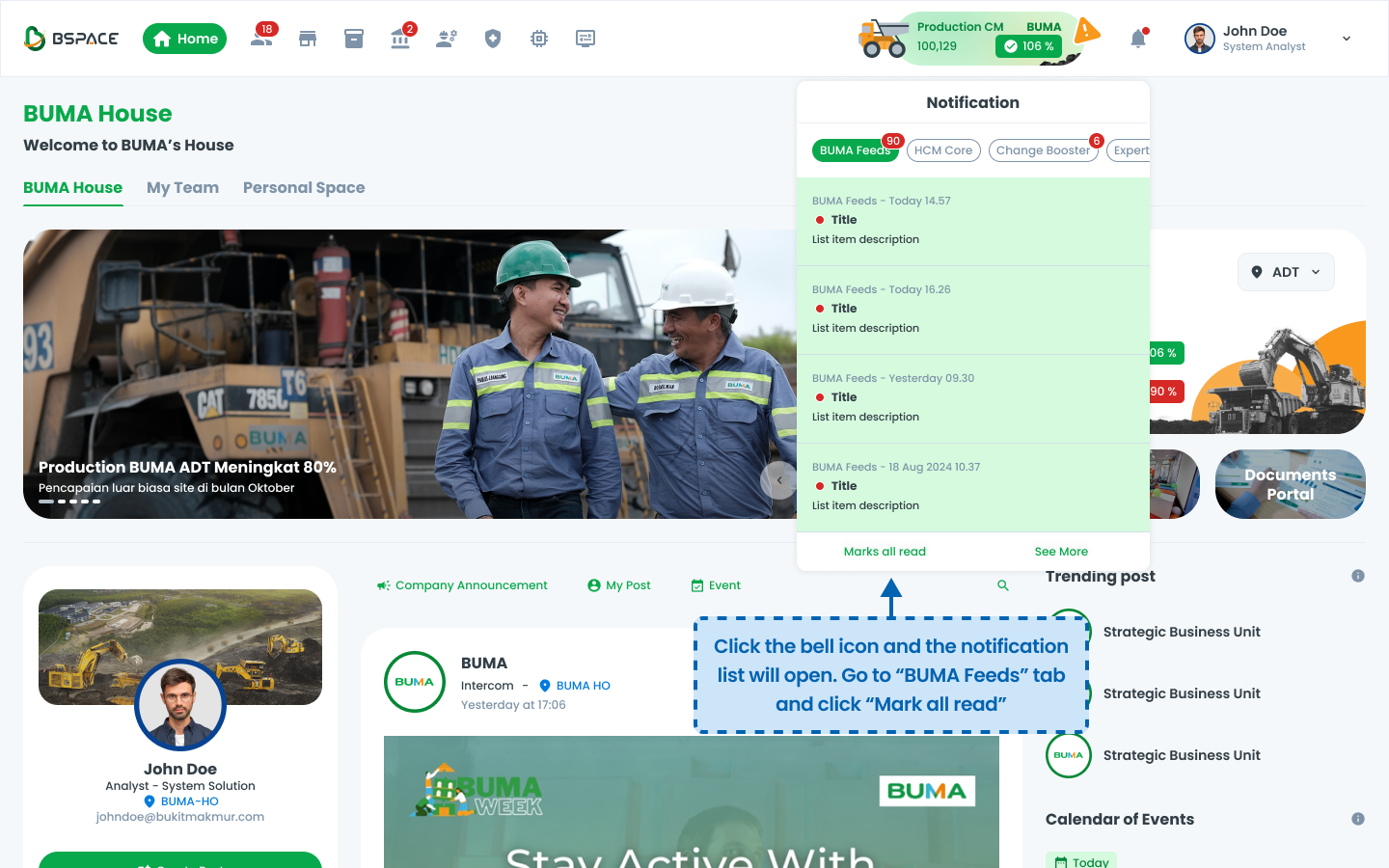 Users can automatically mark all notifications as read by selecting "Mark all read."