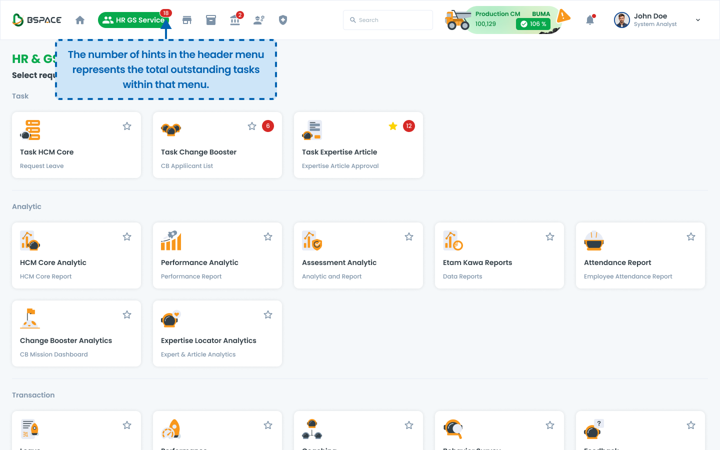The system displays outstanding tasks in the top menu, indicating pending actions.