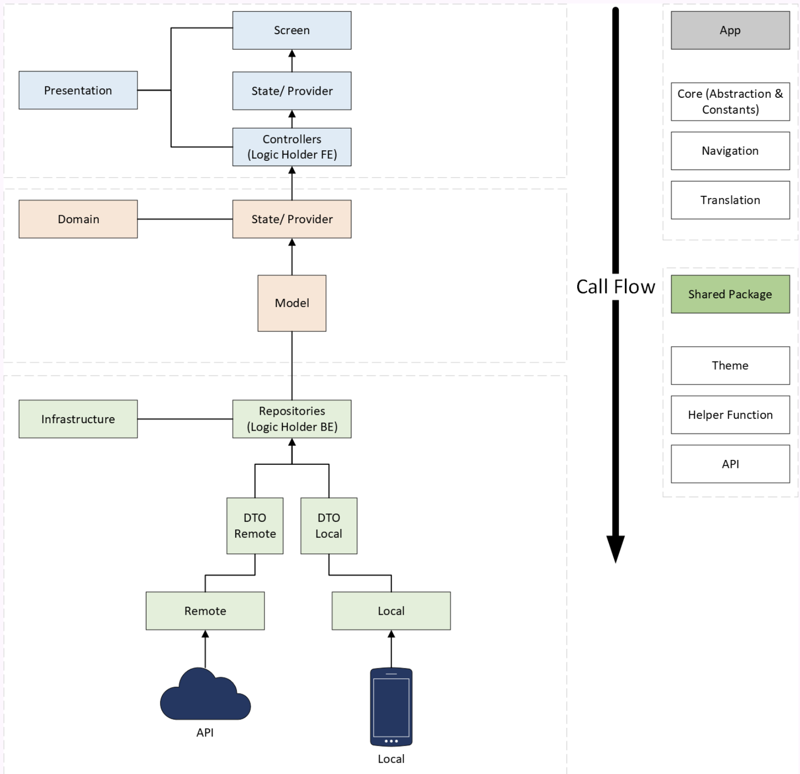 - : Repositories define contracts or interfaces for accessing and manipulating data. They provide an abstraction layer between the domain layer and the data sources (such as databases, web services, or local storage). Repositories decouple the domain logic from the details of how data is fetched or stored.
